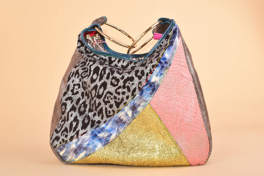 Mamma Mia Bag - Clutch in pelle patchwork con tracolla regolabile