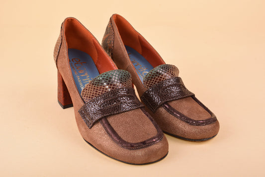 Glitch Glam - Mocassini in pelle patchwork con tacco 7,5cm