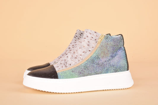 Scimmia Volante con Platform - Sneakers alta in pelle patchwork