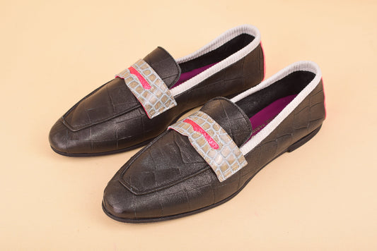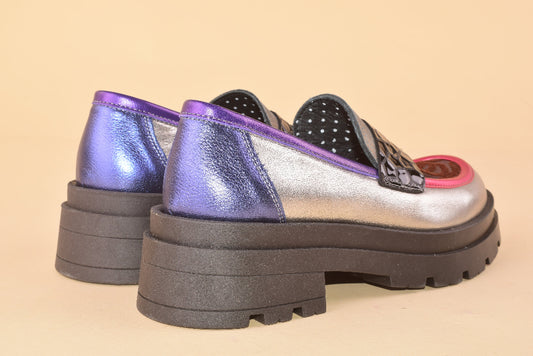 Glitch Glam - Mocassini in pelle patchwork con tacco 7,5cm