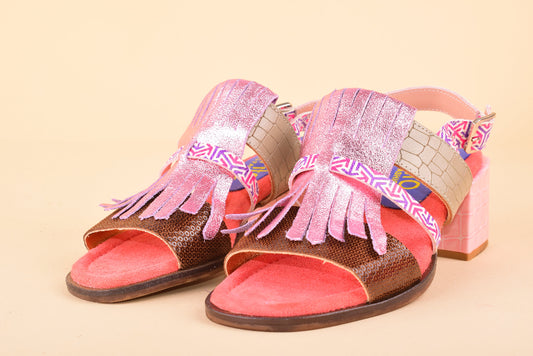 Regular price €59,00 EURRegular priceUnit price / per€155,00 EURSale price €59,00 EURClaudia C. - Patchwork leather sandals with heel