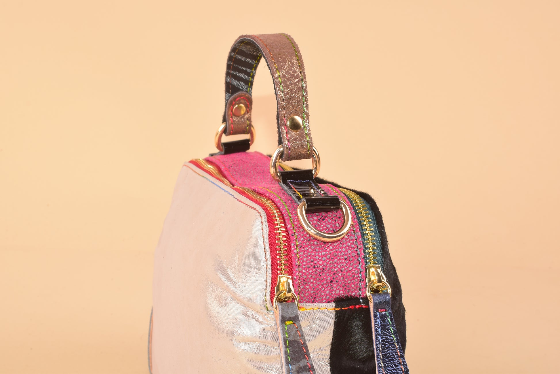 Leggera e versatile, la Bloom Bag è un bauletto strutturato in pelle patchwork che puoi portare comodamente a mano o a tracolla. Il suo design vivace aggiunge un tocco di energia a ogni outfit, mentre la pelle resistente assicura durata e stile. Perfetta per chi ama muoversi con leggerezza senza rinunciare al fascino.Dettagli e materiali